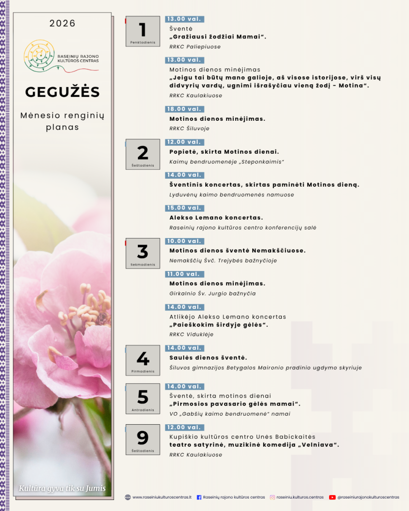 „Jurginės“ sugrįžo į Raseinius – 35 metus gyvuojanti tradicija tęsiasi Praėjusį savaitgalį Raseiniuose nuaidėjo XXXV Žemaitijos regiono liaudiškos muzikos kapelų šventė „Jurginės ’26“. Ši, Raseiniuose prasidėjusi šventė, po beveik dešimtmečio pertraukos sugrįžo į mūsų kraštą. Paskutinį kartą „Jurginės“ Raseinių rajone skambėjo 2018 metais, Šiluvoje. Į…