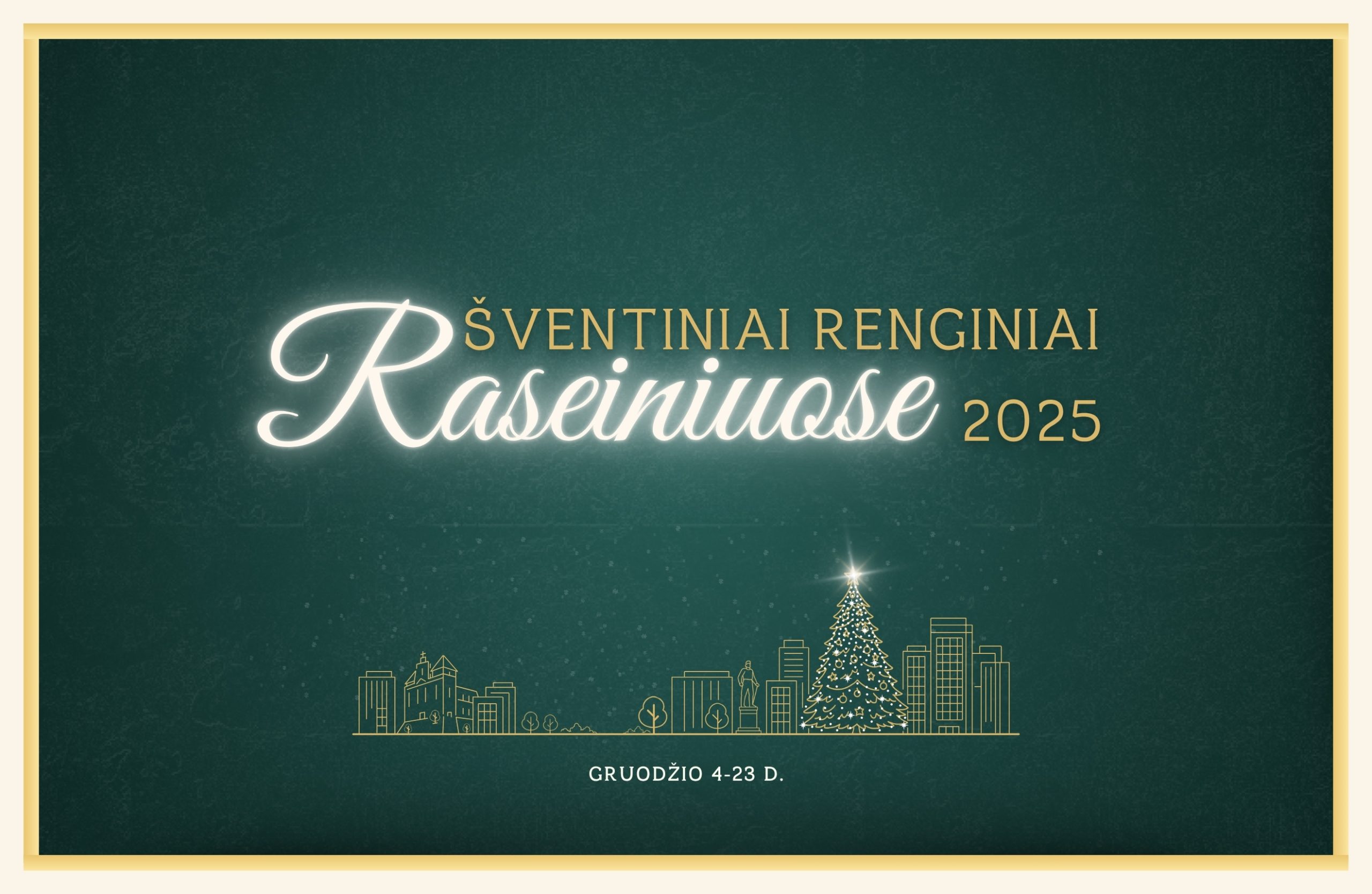 [vc_row][vc_column width='3/12'][/vc_column][vc_column width='6/12']Gruodžio mėnuo į Raseinius atkeliauja kupinas šventinės šviesos, jaukumo ir bendrystės. Mieste pamažu įsižiebia Kalėdų laukimo nuotaika, kviečianti nepraleisti progos sustoti, susitikti ir kartu pasimėgauti įvairiais renginiais. Visą mėnesį netrūks veiklų tiek šeimoms, tiek kultūros mylėtojams, o skirtingose miesto erdvėse skambėsiantis muzikinis šurmulys,...