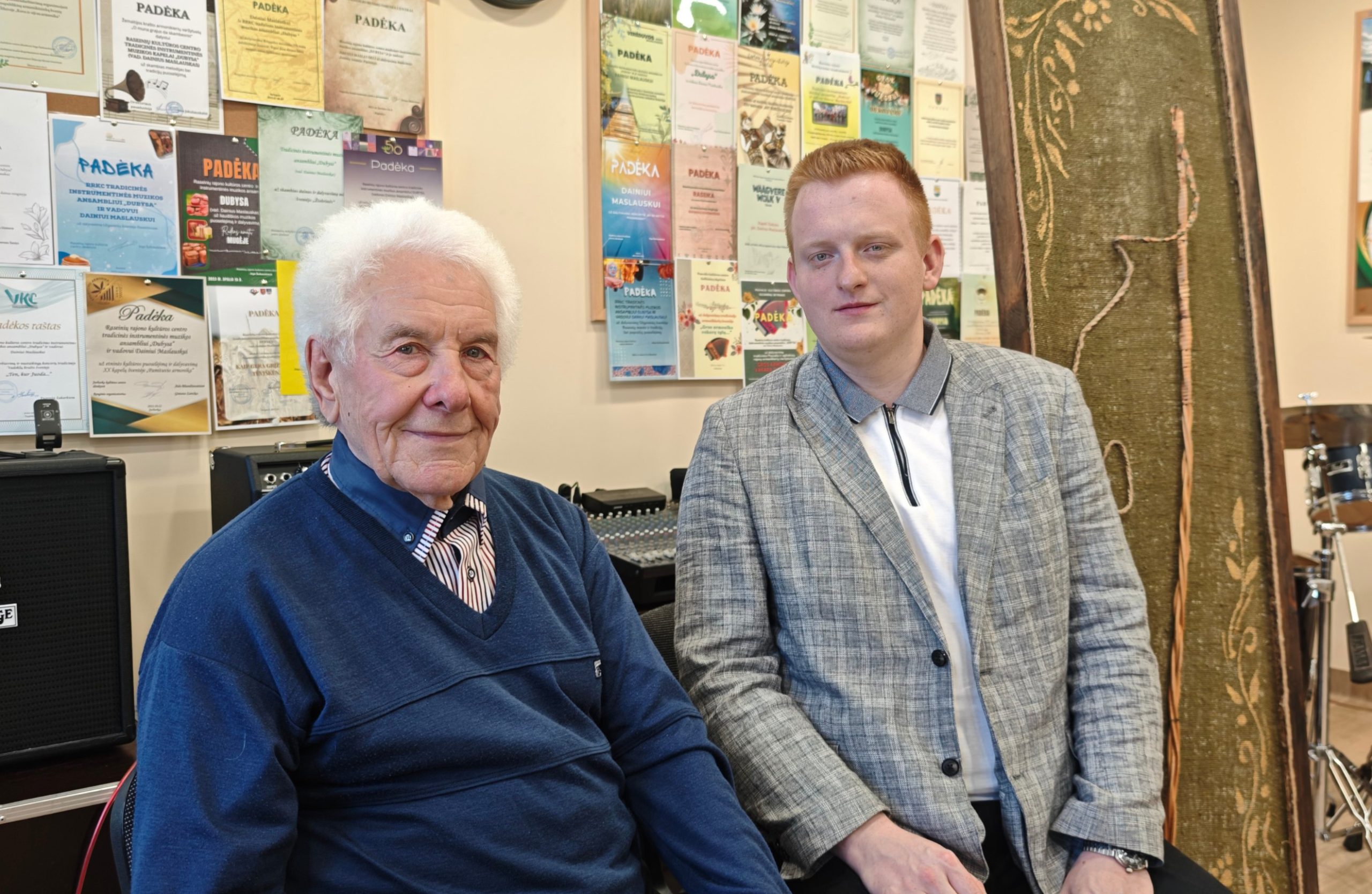 Fotografijoje Jurginių šventės pradininkas, Raseinių garbės pilietis Gintautas Grigalis ir Raseinių rajono kultūros centro kapelmeisteris Dainius Maslauskas