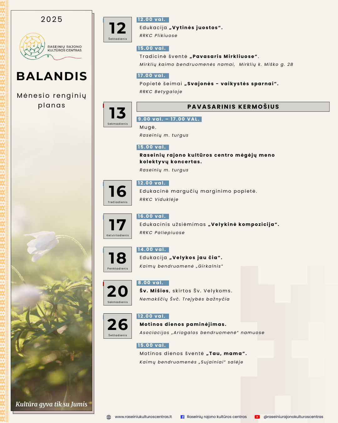 Susipažinkite su balandžio mėnesio renginių planu ir nepraleiskite progos dalyvauti!