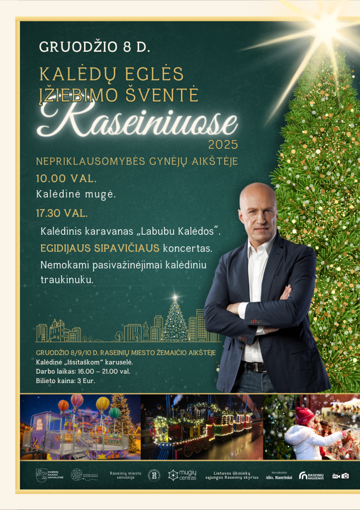 Kalėdų eglės įžiebimo šventė Raseiniuose 2025