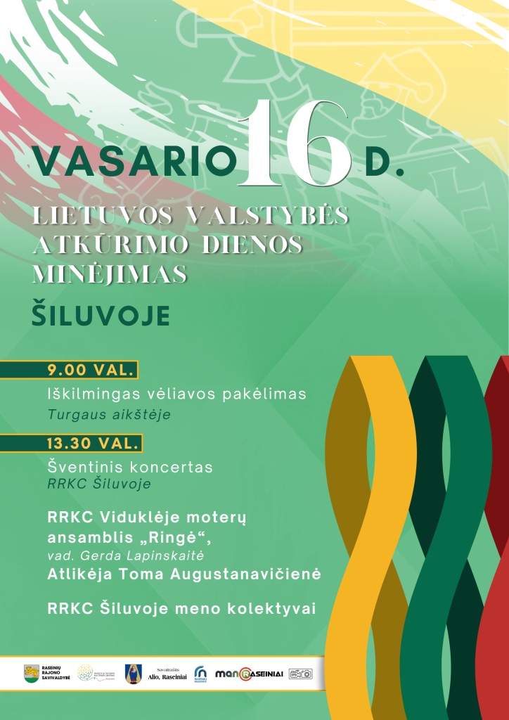 13.30 val. RRKC Šiluvoje vyks šventinis koncertas, kuriame pasirodys RRKC Viduklėje moterų ansamblis „Ringė“, atlikėja Toma Augustanavičienė bei RRKC Šiluvoje meno kolektyvai. Muzika, dainos ir bendrystė taps gyvu padėkos ženklu Lietuvai.