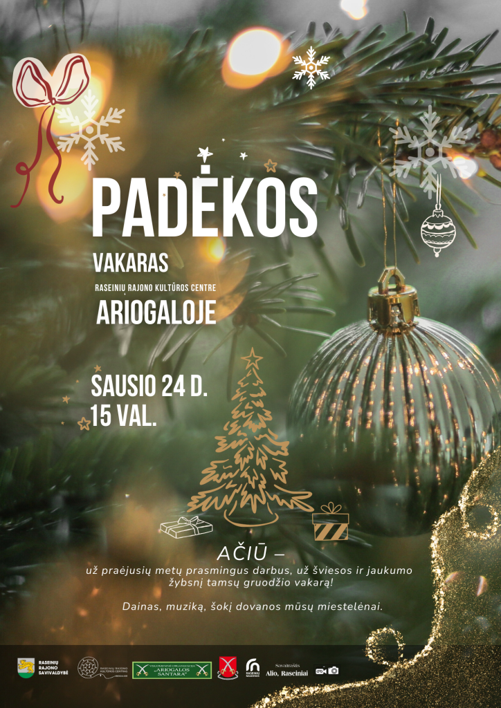 Jau netrukus Ariogaloje įvyks dar viena prasminga šventė – PADĖKOS VAKARAS. Sausio 24 d. 15.00 val., RRKC Ariogaloje.