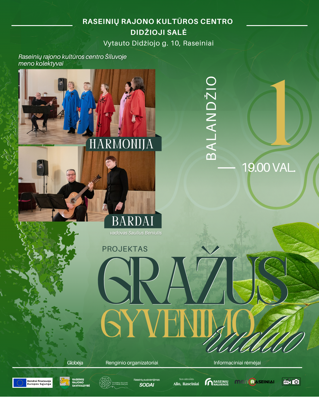 Balandį pradėsime su projektu „Gražus gyvenimo ruduo“. Pirmąją balandžio mėnesio dieną į Raseinių rajono kultūros centrą atvyks RRKC Šiluvoje vokalinis ansamblis „Harmonija“ ir bardų grupė, kolektyvų vadovas Saulius Beniulis.