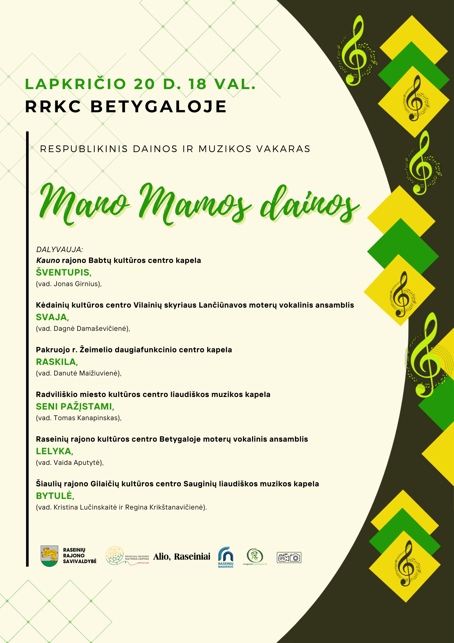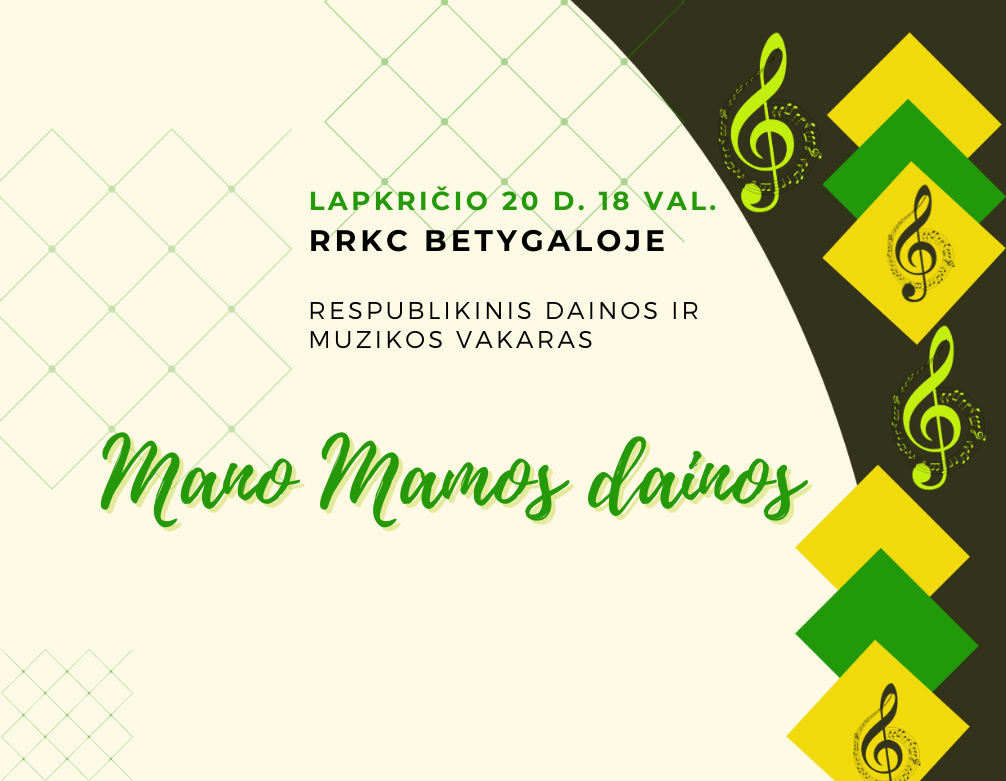 Lapkričio 20 d. 18 val. RRKC Betygaloje vyks Respublikinis dainos ir muzikos vakaras „Mano mamos dainos“.