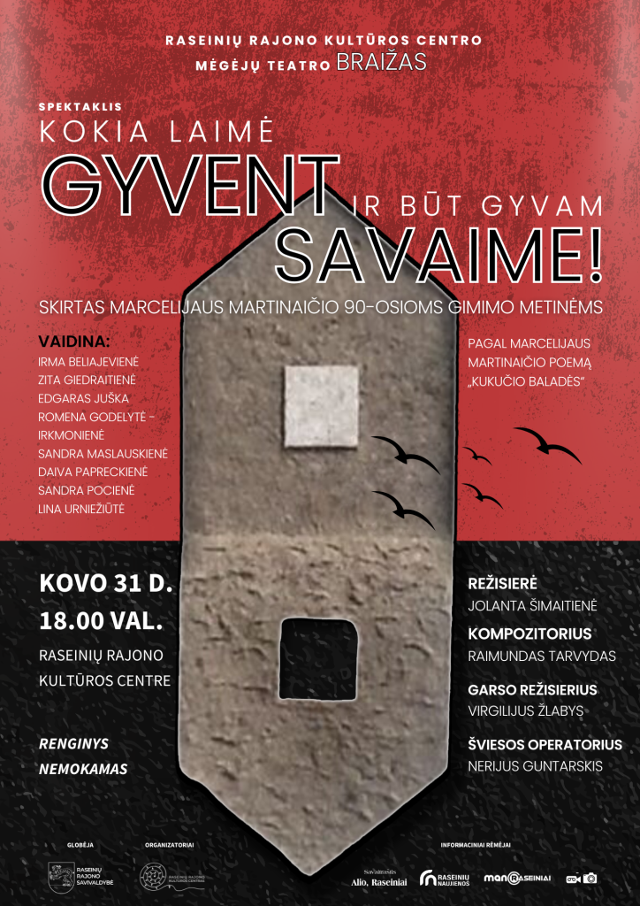 Spektaklis „Kokia laimė gyvent ir būt gyvam savaime“ Raseiniuose 2026