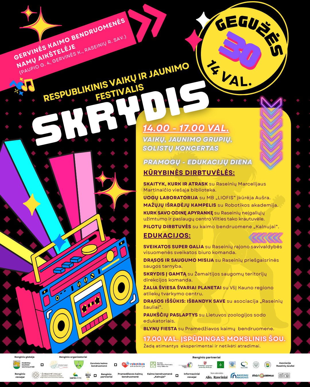 Kol jaunieji atlikėjai muzikuos scenoje, šalia jos įsikūrusiose erdvėse organizacijos, įstaigos ir bendruomenės kurs savo „kiemelius“, kuriuose vyks edukacijos, kūrybinės dirbtuvės, žaidimai ir kitos veiklos vaikams bei jaunimui.