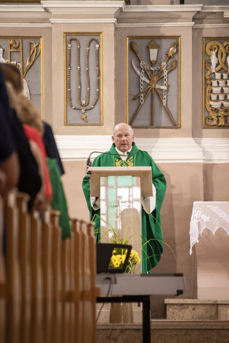 Dienos pradžia – iškilminga ir rimta. Raseinių Švč. Mergelės Marijos Ėmimo į dangų bažnyčioje aukotos Šv. Mišios už Lietuvą ir jos žmones. Pamaldas papuošė Raseinių rajono kultūros centro mišraus choro „Šatrija“ (vadovas Gražvydas Jegnoras) atliekami kūriniai, sustiprinę bendros maldos dvasią.
