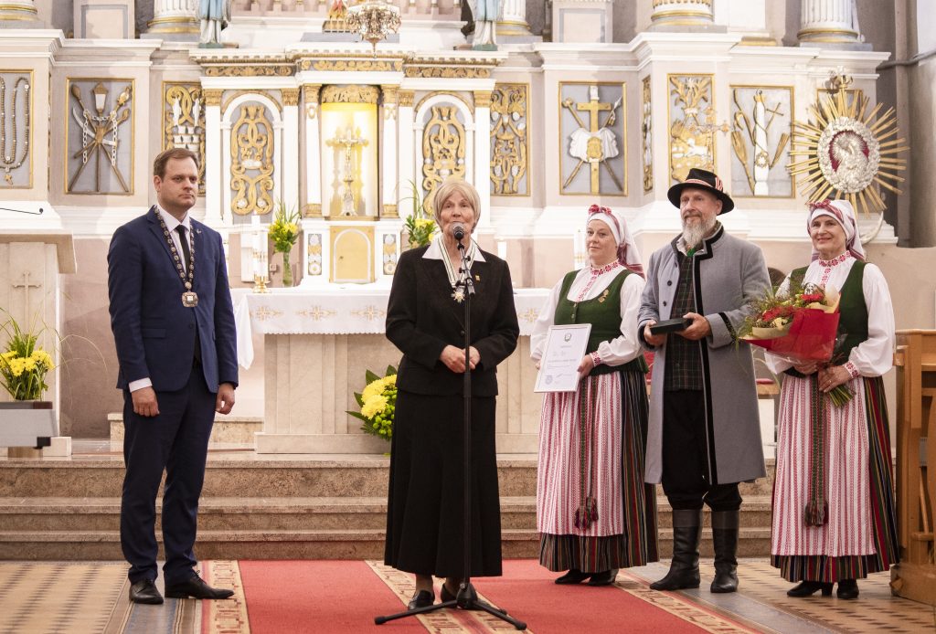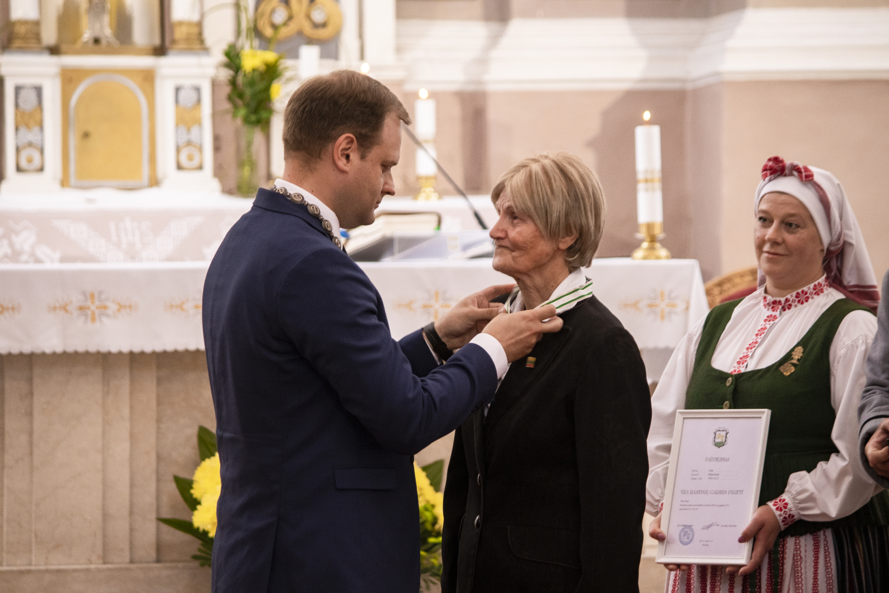 Po pamaldų vyko Raseinių Garbės piliečio vardo suteikimo ceremonija. Šiemet šis garbingas titulas skirtas buvusiai pedagogei, ilgametei švietimo darbuotojai ir aktyviai visuomenininkei Onai Babonienei, įvertinus jos nuopelnus švietimo, kultūros ir bendruomeninės veiklos srityse.