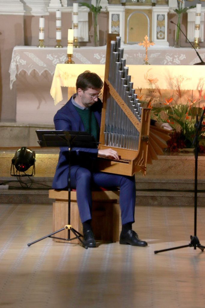 Ypatingą vietą šioje koncertinėje programoje užėmė organetas – mažieji, viena ranka dumpliuojami vargonai, dažniausiai vaizduojami Šv. Cecilijos, muzikos globėjos,